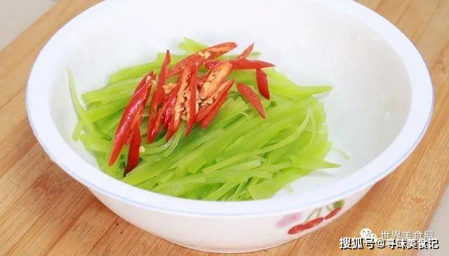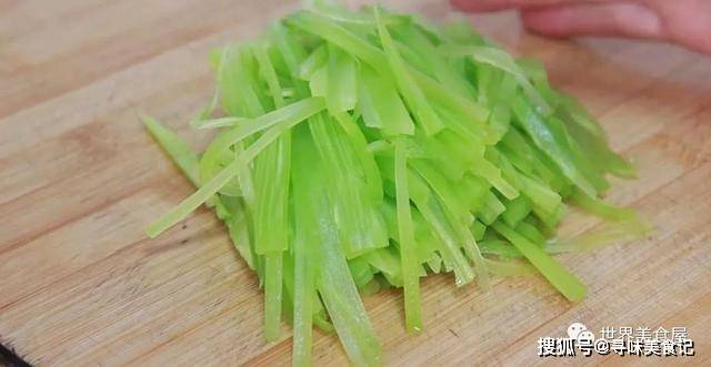 5、然后将莴笋切丝备用。