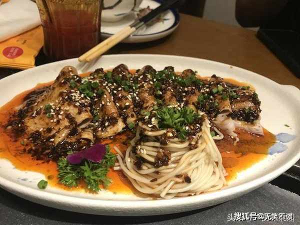 重庆口水鸡36元,鸡肉入味鲜嫩,酱汁看着慢慢的辣,吃起来很响,花椒和辣油,一个也不能少。
