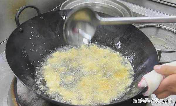 下面,我们把鸡丁在油锅内滑一下,锅内烧油,油温接近四成热时,放入鸡丁,油面平静,极少的冒泡,开中火炸制一分钟左右,倒出鸡丁控油。