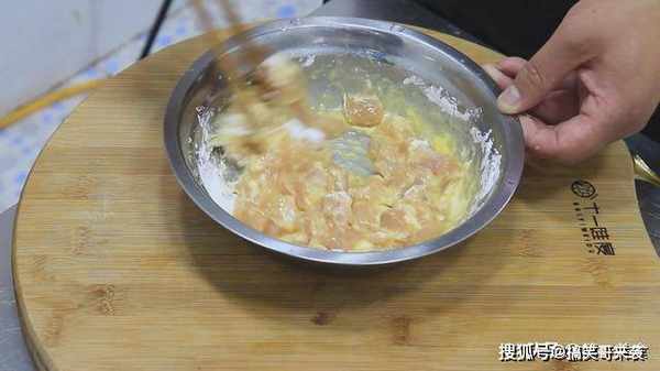 ,搅拌均匀以后,放入玉米淀粉少量,用筷子顺着一个方向继续搅拌,然后腌制10分钟。