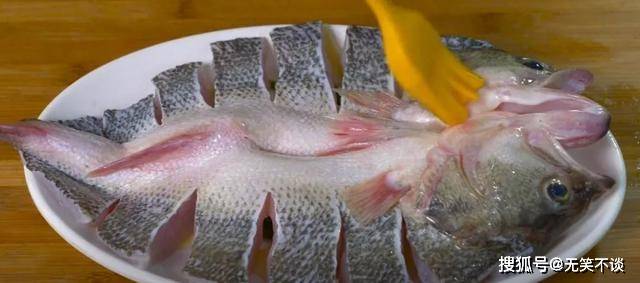 4. 接着在鱼身上刷一层花生油,锁住鱼肉的水分和营养。
