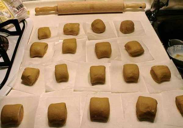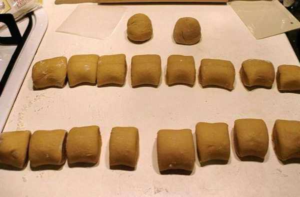 步骤5、用切刀或刀子将面团分成块状(我总共分成18份);