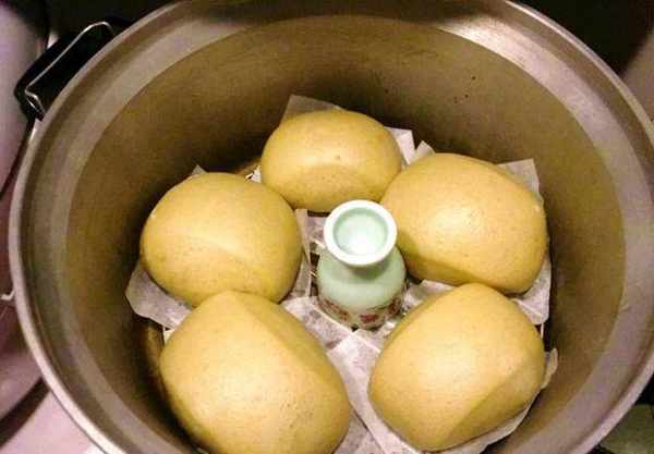 因为比较多馒头,分成上、下两层,我用了一个瓷制的小杯子放在中间,上面可以叠一层。