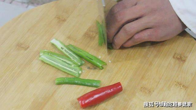 尖椒四个,去两头成段,每个再剖两半,去籽。