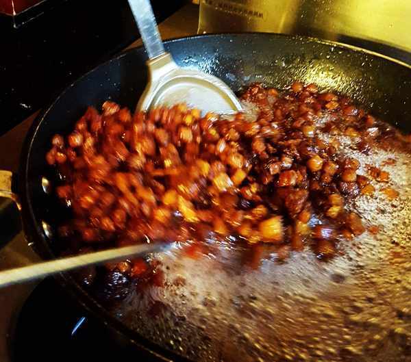 豆豉火锅,在糍粑辣椒的加持下,以辣椒特有的果胶质裹挟着风韵十足的发酵豆豉,两者在滋滋的辣油中本着华山论剑的姿态闪烁着刀光剑影,而这一切又被后来居上的蒜末、蚝油、胡椒打了个措手不及,一场小咖云集的舞林盛会,迎来它的主角——肉沫,这个聪明的主角从不站派,它只是吸收着各家所长;最后登场的白糖,耐心调和着感官与味觉的最后一关,也正是这一关,悠悠大火慢慢退出江湖,文火上位,老抽上色,沸水入锅,配菜全倾,一方名菜,重出江湖。