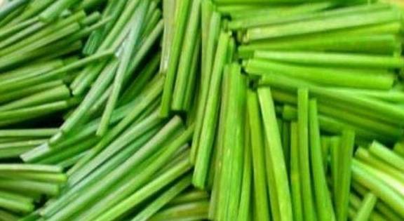 2、韭菜苔,洗净切段;把姜切成丝,放置备用。