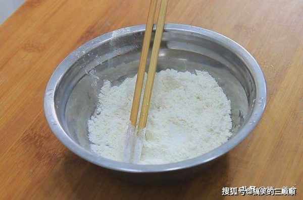 然后加入适量的温水,温水的水温在30度到40度就行,天热时也可以用凉水,温水要适量添加,先搅成面絮,再揉成面团。