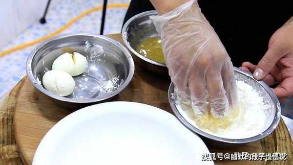 把改好到的鸡蛋先蘸上鸡蛋液,再裹匀玉米淀粉,这样能使鸡蛋炸得更加酥脆。