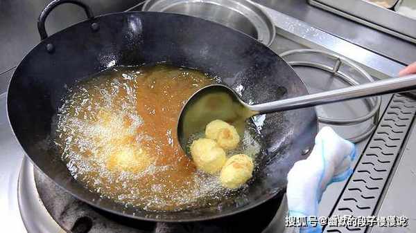 锅内烧油,油温五成热时,放入鸡蛋;用勺子来回翻动鸡蛋,以免鸡蛋粘锅;中小火炸制两分钟左右,鸡蛋炸到表皮酥脆时,倒出控油。