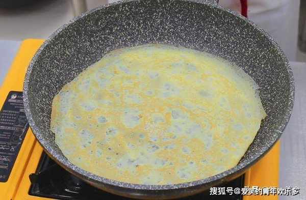 直接倒入一勺鸡蛋液,轻轻晃动不沾锅把鸡蛋液摊匀。摊的越薄越好熟还好吃。