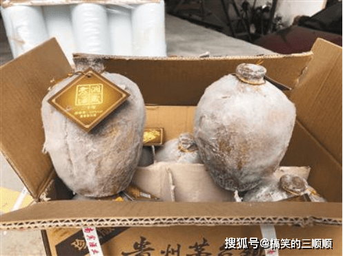 这两箱酒的瓶子上布满了霉斑,就说明酒是放在相对潮湿的环境下储存的,但是储存白酒的最佳环境就是需要干燥,还有就是避免阳光直射,在温度上最好保持在20°左右。若是瓶子上长出霉斑的话,就说明这老酒连最基本的储存环境都是不对的。