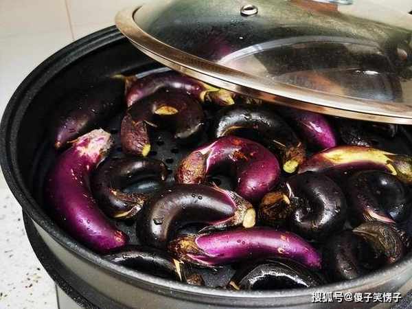 2、茄子凉水上锅蒸,从上汽开始算时间,蒸15分钟,看好时间,不宜蒸太久。