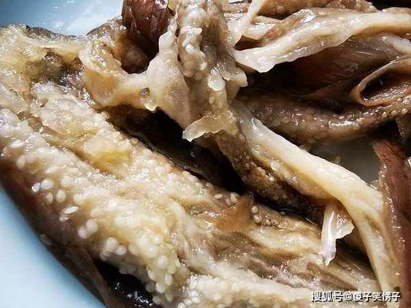 9、想吃的时候,可以把茄子撕成小条,特别好吃,这完全就是奶奶那时候做的味道,百分百还原,茄子肉做好撕出来像豆瓣肉一般,可以配清汤面、白粥等等。