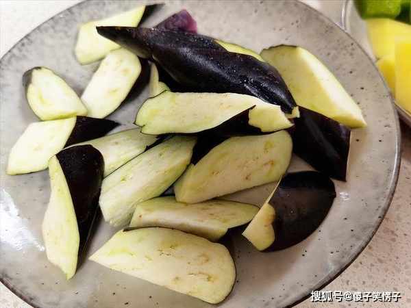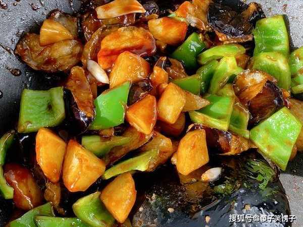 食材:茄子、土豆、青椒、葱蒜末