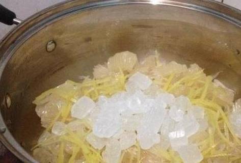 大家可以把柚子中的籽去掉,然后将柚子肉切碎,然后就可以放到锅里熬煮了,再加入一些清水,放入冰糖,把柚子皮大概先熬煮15分钟,如果柚子皮变得透明了,再把柚子果肉倒进去,然后调成小火熬煮,如果锅里面的水分熬煮干了之后再关火,然后就可以放到一边放凉,再装到没有水,没有油的玻璃瓶里,最好是提前把瓶子进行一下消毒,可以用白酒消毒,然后把冰糖柚子皮倒入玻璃瓶中,再倒入适量的蜂蜜,把口封好。