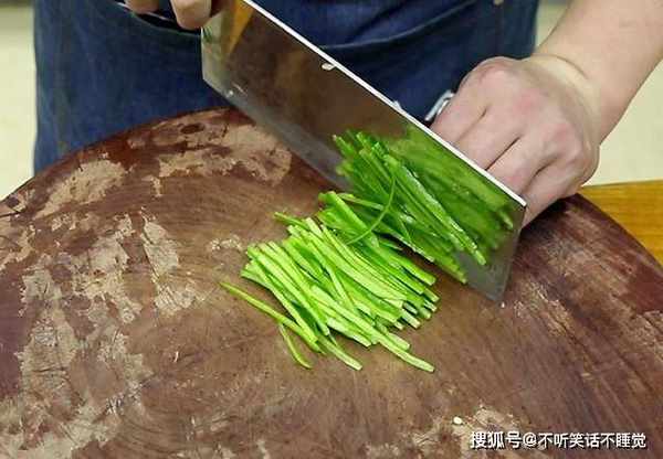 准备一个青椒,把籽去除切成细丝,用来搭配颜色。