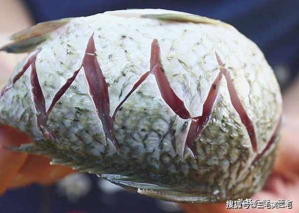 把一条鲫鱼、 刮鳞 去除内脏、鱼鳃清洗干净。鱼身两面都打上一字连刀,方便煮熟和入味。