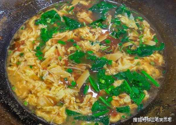 【家常鸡蛋汤】:鸡蛋、木耳、黄花菜、金针菇、豆腐皮、 菠菜、西红柿