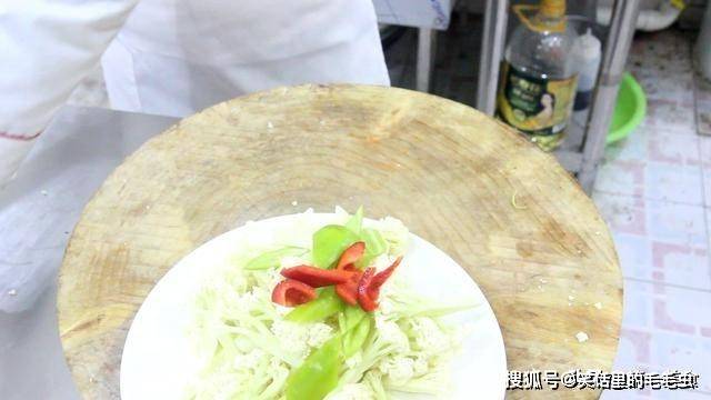 青红椒各半个 切成菱形片,和花菜放在一起,用来配色。