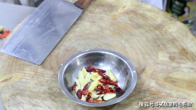 大蒜一把切成薄片,生姜一块切成片,抓入一把红干椒。