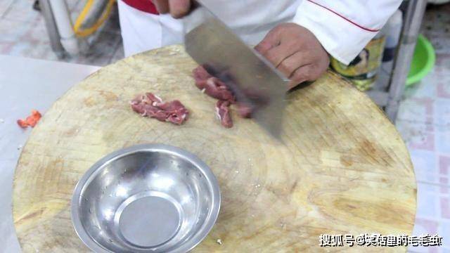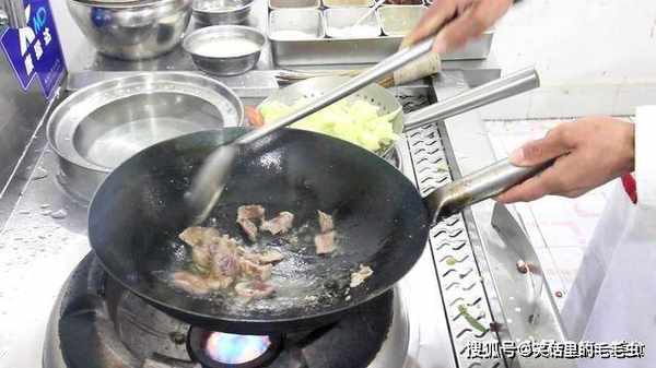 3.下面,我们开始烹饪,锅内加入植物油,倒入肉片翻炒几下,炒变色以后,起锅。