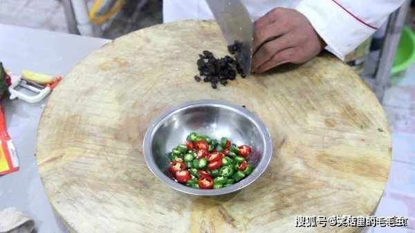青红线椒3条都切成圈,豆豉一小把切碎后和青红椒圈放在一起。