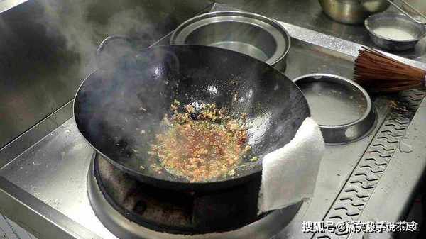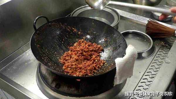 3.锅内再烧油,油烧热以后,倒入葱姜,爆出香味,倒入肉末,肉末炒白炒香以后,加入蚝油5克增加鲜味搅拌化开蚝油,加入黄豆酱20克,豆瓣酱5克,把酱料炒散、炒出香味,酱料本身自带咸味,炒制时不用放盐。