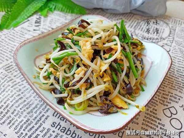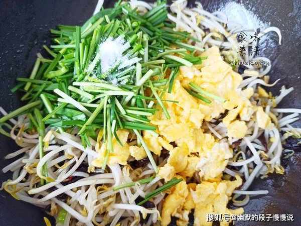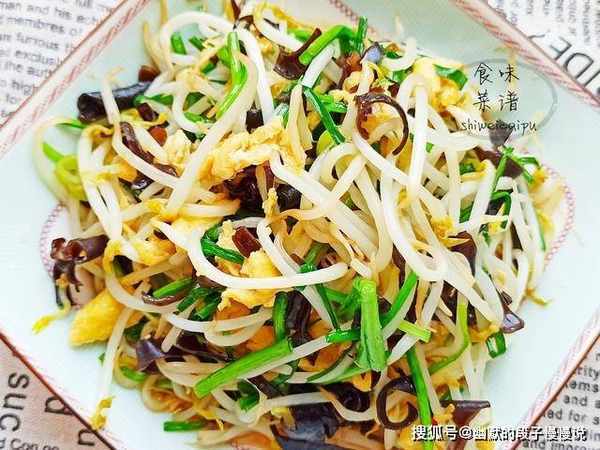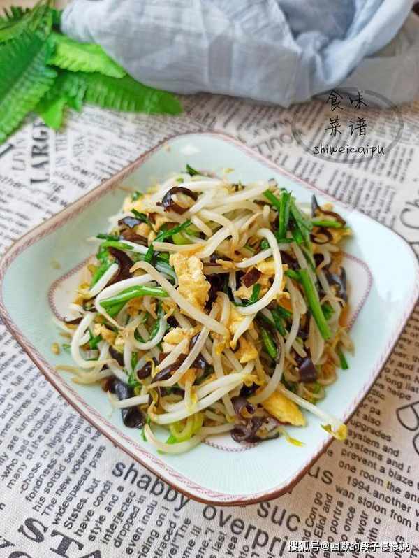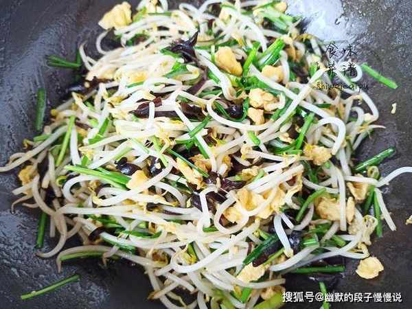 食材:黑木耳、鸡蛋、韭菜、豆芽、葱