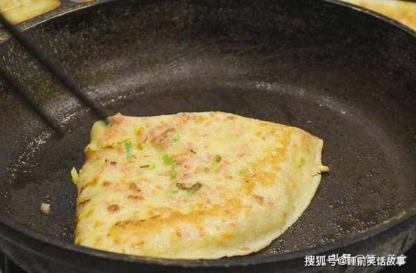 全程小火煎 ,一面定型以后咱给来个小翻,翻过来煎另一面。也可以盖上锅盖这样煎饼更加柔软。