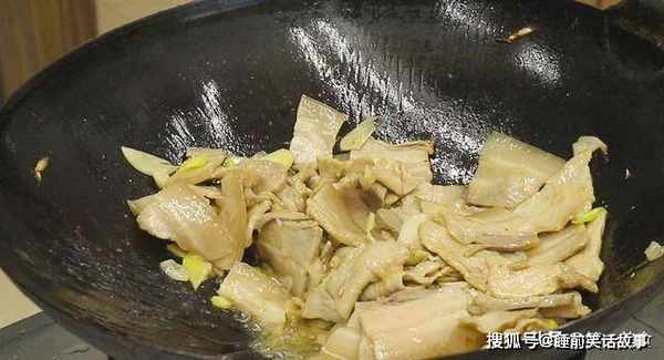 防止炒肉片的时候粘锅,先把生肉片进行煸炒,炒出油, 闻到肉香味以后,放入一些