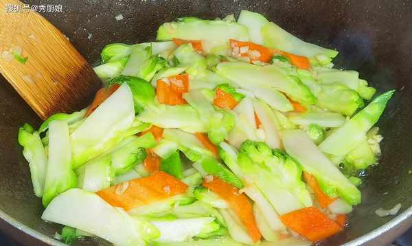 1.儿菜略带一点苦味,在炒之前,需要先焯一下水。焯水时,要加一点盐和食用油,这样可以减少儿菜中叶绿素的分解。如果切片,焯水1-2分钟即可,如果整块放入锅中,要多焯一会儿,大概3分钟左右即可。