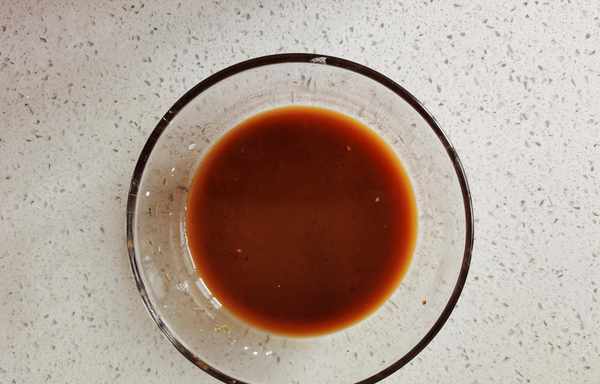 第三步:再调一碗料汁,碗中加一勺生抽、一勺蚝油、一勺陈醋、一小勺糖提鲜,一勺淀粉,再加半碗清水调匀。