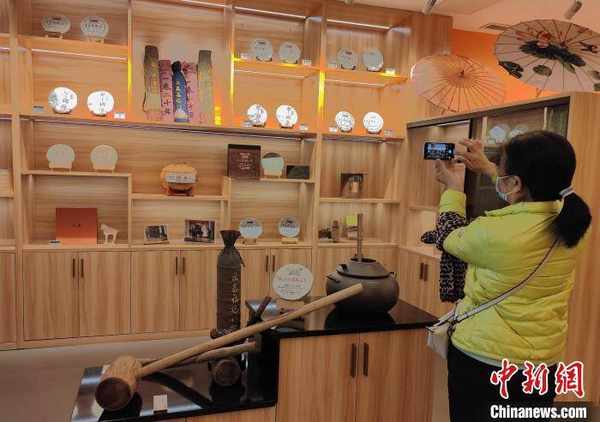 参观者拍摄茶叶产品、制茶工具等。 邓霞 摄