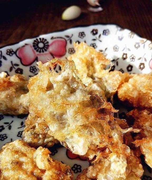 下面来说说我最爱的两种牡蛎做法:方法一:东北名菜炸蛎黄。东北的炸蛎黄不需要配菜,就是将海蛎子在面糊中拖一下,在热油中迅速炸熟捞出。口味重的可以蘸椒盐食用,口轻的直接吃就可以。而且制作非常简单,油炸前不用腌制,不需要加盐,如果加盐,会使牡蛎脱水发硬,而且咸得没法吃,这个一定要注意。
