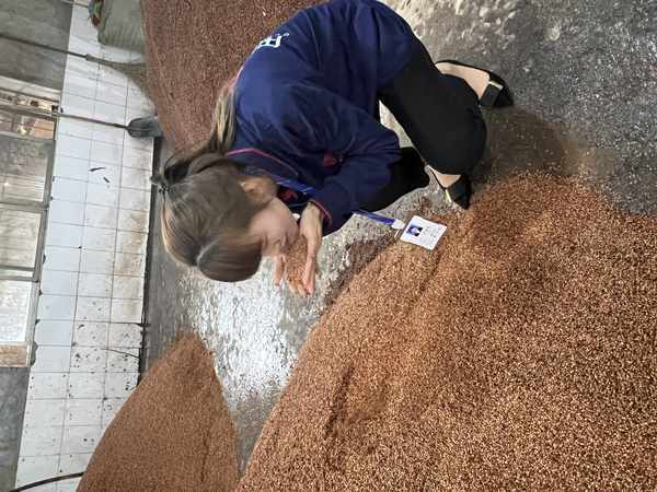 将几滴酒放在手心,双手来回搓几下,闻闻香气,好酒在搓的时候会感觉到有粘性,香气是缓缓地释放,时间会比较长,并且香气丰富饱满纯正不呛人。