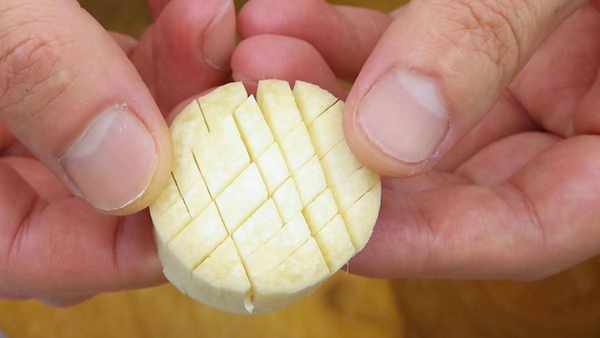 头尾去掉,切成小段,再两面打上十字花刀,清洗干净。