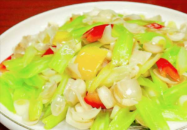 6.好了,一道清香脆口的百合炒西芹就做好了。