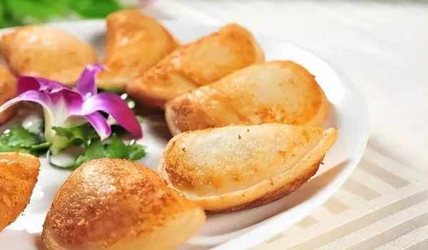 6、油锅烧至7成热,下入胚子大火炸至金黄色,捞出控油,装盘即可。