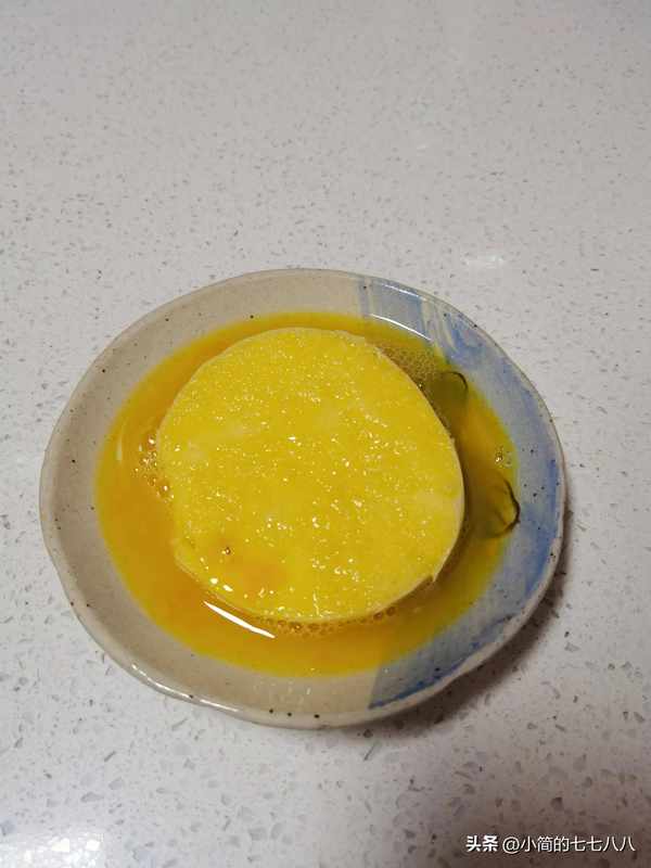 2.馒头切片,用筷子夹着蘸满蛋液。