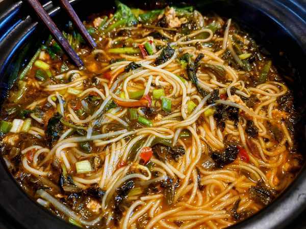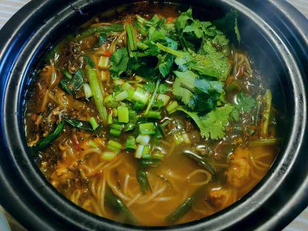 小锅米线是云南传统美食,是指米线和配菜都是一锅煮出,煮完后连锅端上,热气腾腾。