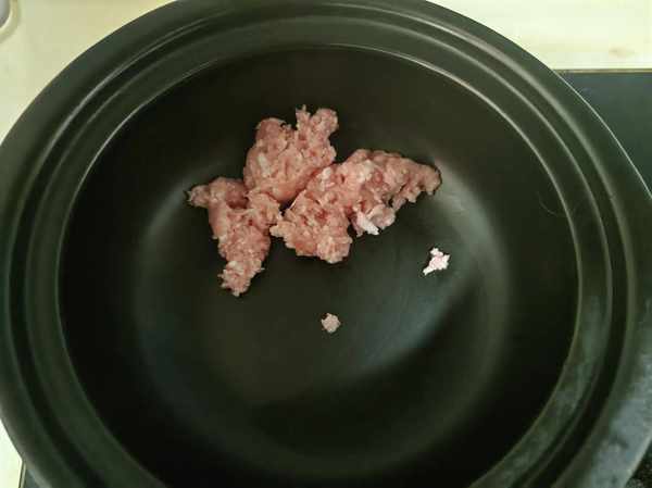 将猪肉沫放入砂锅