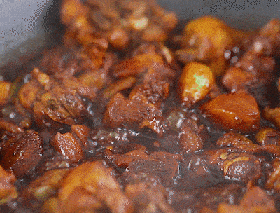 纯用酱汁焖煮出来的鸡肉,色泽油亮,酱汁和九层塔的味道充分融入鸡肉,肉香味浓但不腻口,咸鲜中带着微甜和微辣。因为没有水煮,所以肉质紧实又弹嫩,浓稠的酱汁拿来拌饭真的超棒!