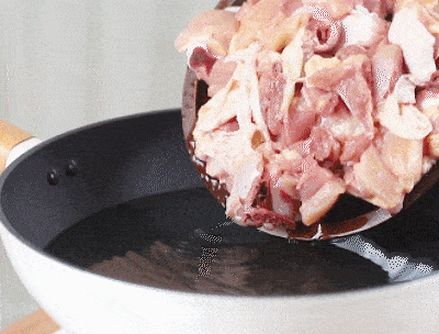2、鸡块冷水下锅,加料酒,煮开后捞出备用。
