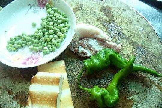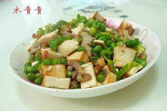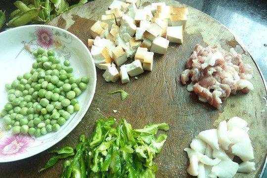 1.肉,青椒,豌豆,豆腐干