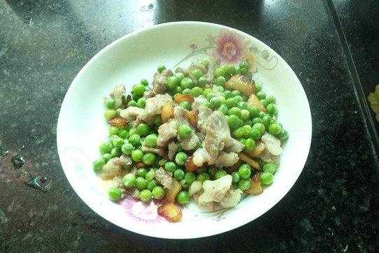 3.豌豆用开水氽熟待用。