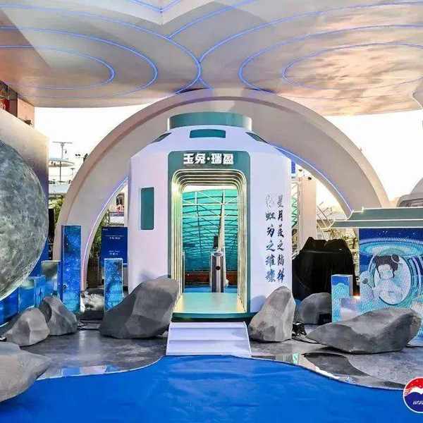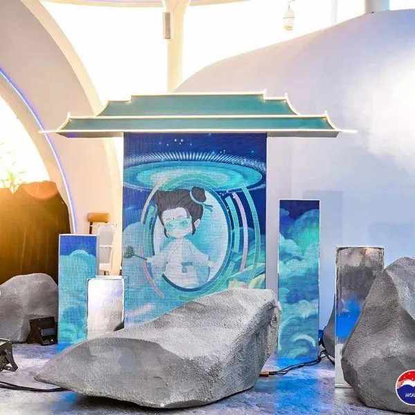 签到处以登陆月球为创意,请所有嘉宾用带有“茅台五线”寓意的现代旗标放置真实还原的月球上,且有宇航员为之引导,并附有专属巽风船票,将宾客在第一时间带入全方位沉浸式的体验。