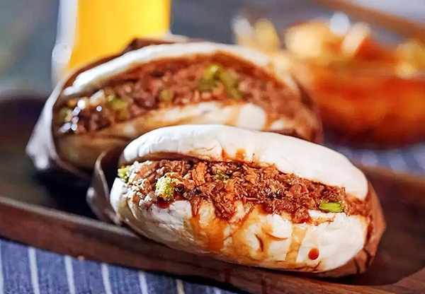 要是你不喜欢烧饼酥脆的口感,也没关系,臊子肉夹在馒头里吃也是超赞的选择,臊子肉的香浓加上馒头的香甜绵软也是绝配!