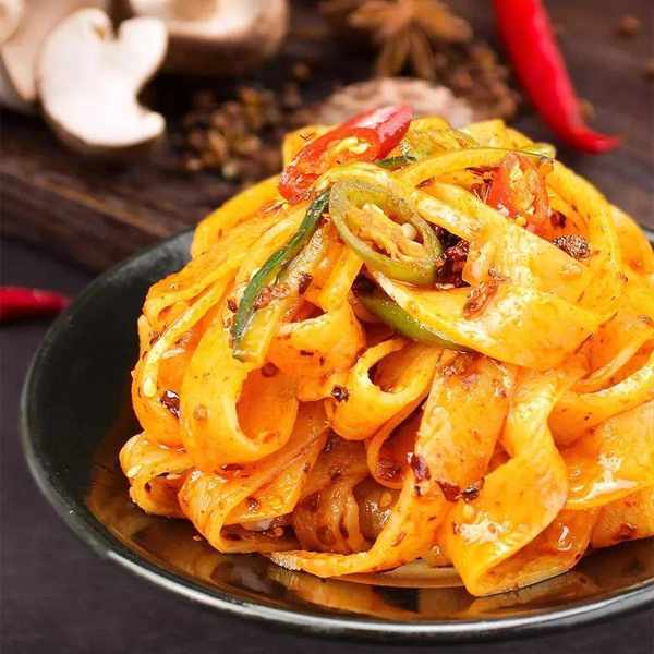 岐山擀面皮酸辣可口、柔软筋道、凉香爽滑。以"薄、软、筋、光,酸、辣、鲜、香"而闻名。