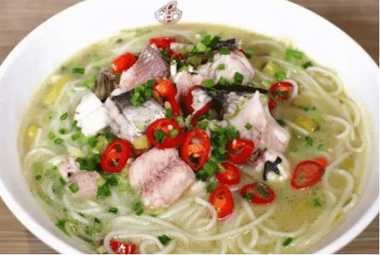 闪闪发亮的玉白米粉,躺在醇厚明亮的鱼汤里,宛如刚泡完澡的少女般楚楚动人,再套上一份鱼片、葱花、酸豆角、剁椒、蒜,再加上猪油渣的米,话不多说,开始嗦,夹一筷子米粉,卷上汤汁的米粉,夹上一些辣子、葱花,自动滑进肚子,热辣爽口,一嗦入魂!