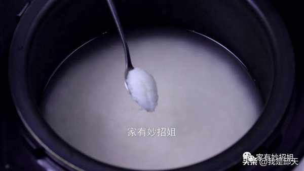 接着再往里面倒入一小勺的白醋,白醋可以使煮出来的米饭更加松软好吃。
